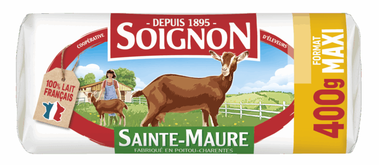 Sa couleur blanche, sa texture fine et fondante, et son goût franc, typique du fromage de chèvre, raviront les amateurs de chèvre. La Bûche Sainte-Maure 400 g Soignon emballée garantit une hygiène et une conservation optimale. D’un diamètre généreux de 55 mm, la bûche Sainte-Maure 400 g Soignon est facile et rapide à trancher.